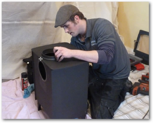 I seriously considered fitting the stove and chimney liner myself but eventually decided against it. The reasons for this was that it was the middle of a very rainy winter; it is definitely a two-person job and I would have had to pay the local building control £400 anyway to get my work improved! It was easier to use a HETAS approved installer.