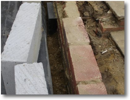The next task is to fill the cavity up to 9 inches below the DPC level with weak concrete.
