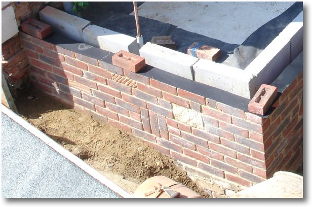 The first task is to fill the cavity up to 9 inches below the DPC level with a weak mix of concrete.